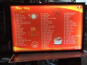 Làm bảng hiệu hộp đèn LED mỏng – Thực đơn quán ăn